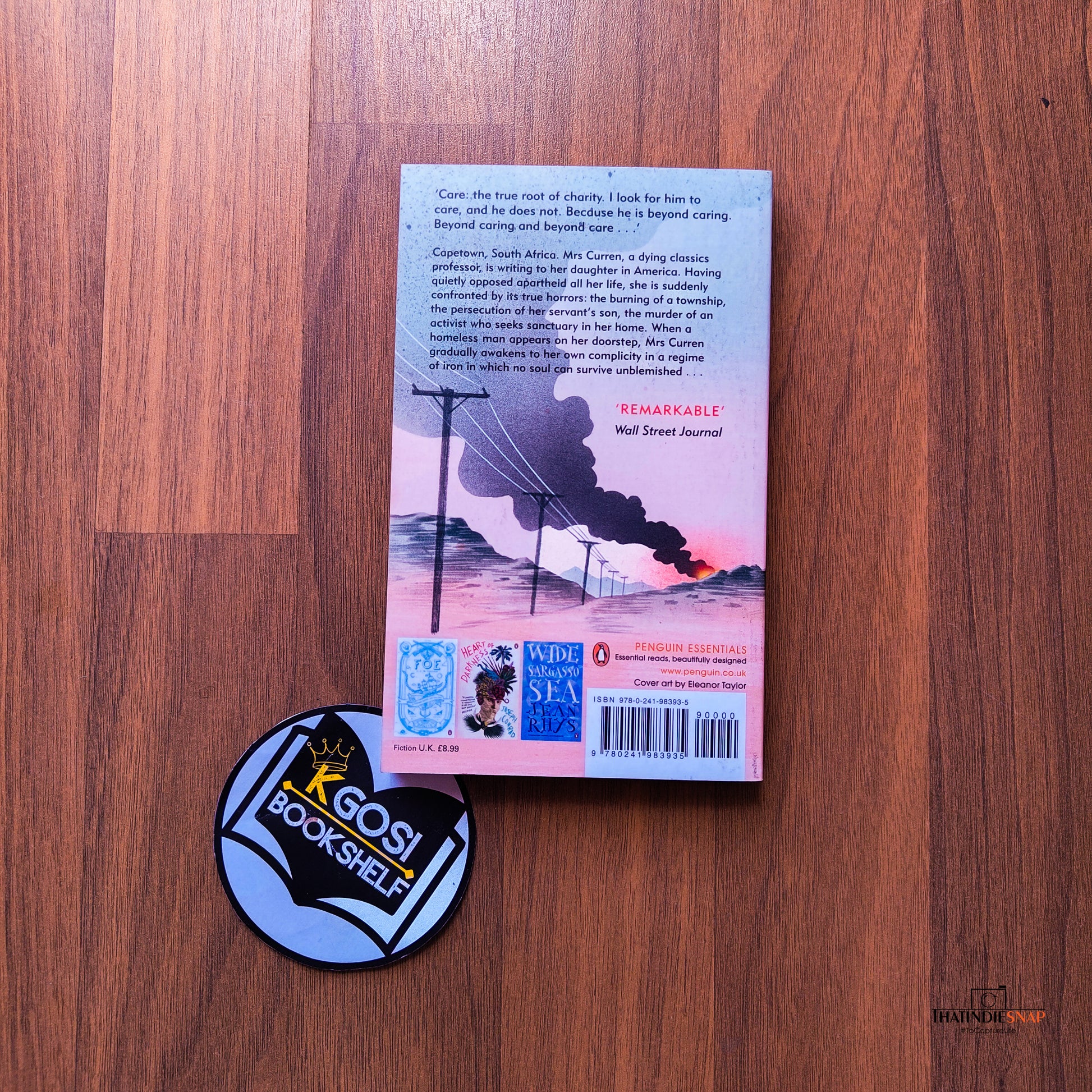 In Cape Town, South Africa, an old woman is dying of cancer. A classics professor, Mrs. Curren has been opposed to the lies and brutality of apartheid all her life, but has lived insulated from its true horrors. Now she is suddenly forced to come to terms with the iron-hearted rage that the system has wrought. In an extended letter addressed to her daughter, who has long since fled to America, Mrs. Curren recounts the strange events of her dying days. She witnesses the burning of a nearby black township and discovers the bullet-riddled body of her servant's son. A teenage black activist hiding in her house is killed by security forces. And through it all, her only companion, the only person to whom she can confess her mounting anger and despair, is a homeless man, an alcoholic, who one day appears on her doorstep.